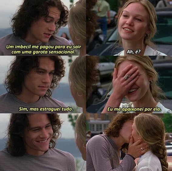 É parece que esse não é mesmo um clichê romântico, e ele não seria mesmo se nosso amado Patrick não tivesse mais uma carta na manga e com ela terminamos esse filme com um beijo desse casal de valentões sentimentais ao som I WANT YOU TO WANT ME. Não posso esquecer de mencionar que sua irmã também se deu bem e bom Cameron conseguiu o coração de sua princesa e como todo bom conto de fadas TODOS VIVERAM FELIZES PARA SEMPRE.